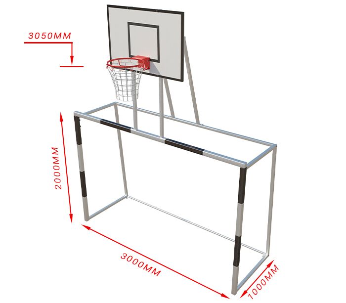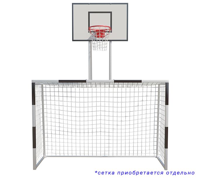 К071-80щ Ворота для минифутбола/гандбола 60х60 3х2х1м+баскет.щит120х80 влагост.+кольцо трен.+сетка 2мм