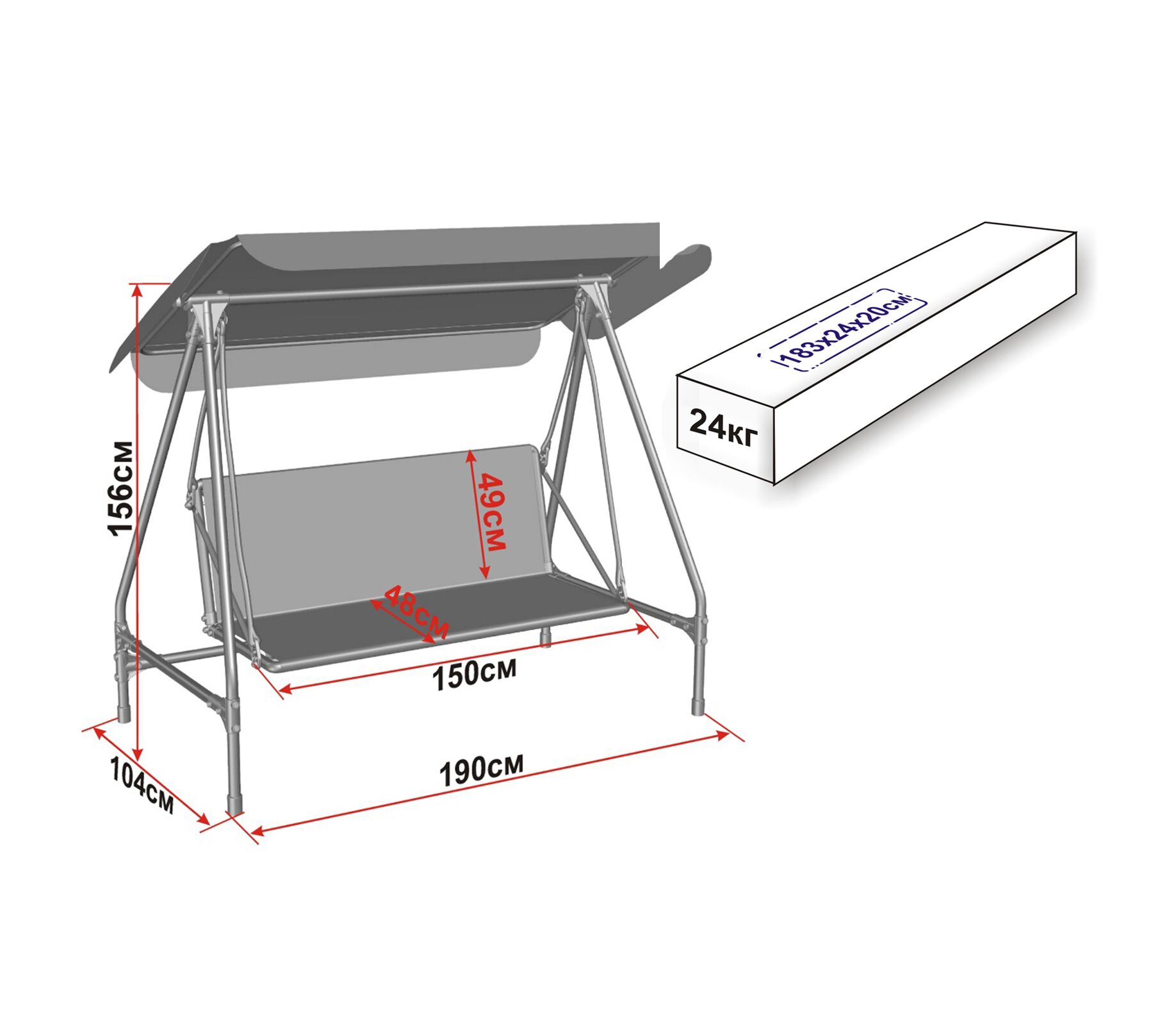 Размер изделия (габариты ДхШхВ), см: 190х104х156