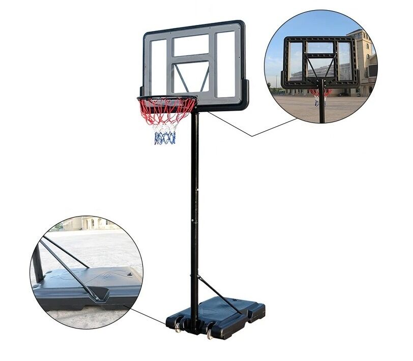 Комплектация: Стойка, щит, основание кольца, сетка для кольца, инструкция, ключи для сборки