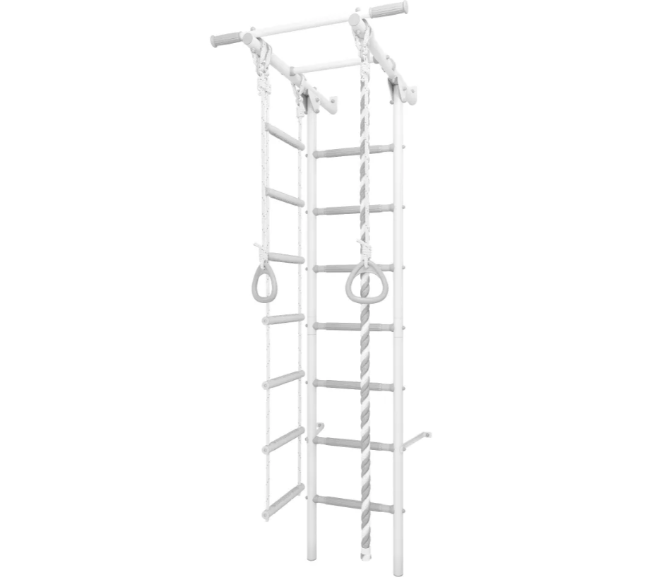 Комплектация: турник неподвижный, канат, кольца гимнастические, лестница веревочная