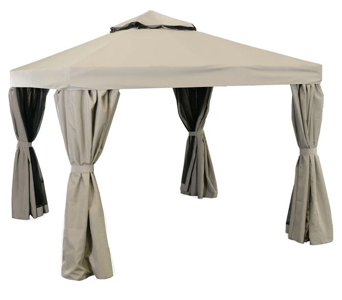 Страна производства: Китай Материал: Алюминий, полиэстер Доступные цвета: Бежевый Допустимая нагрузка, в кг: Не ограничено, при использовании по назначению Размер изделия (габариты ДхШхВ), см: 400х400х280